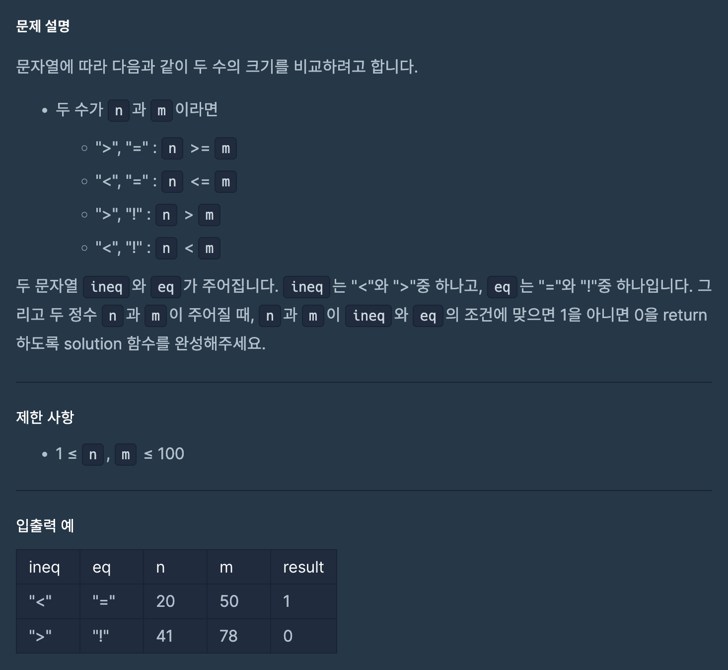 [프로그래머스] Lv.0 조건 문자열
