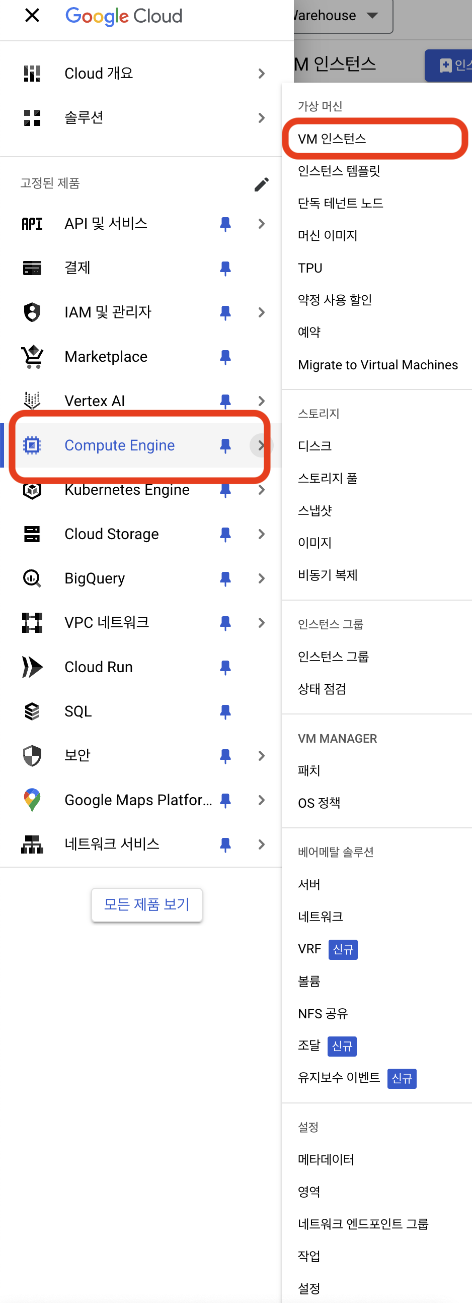 1. Compute Engine > VM 인스턴스 메뉴 진입